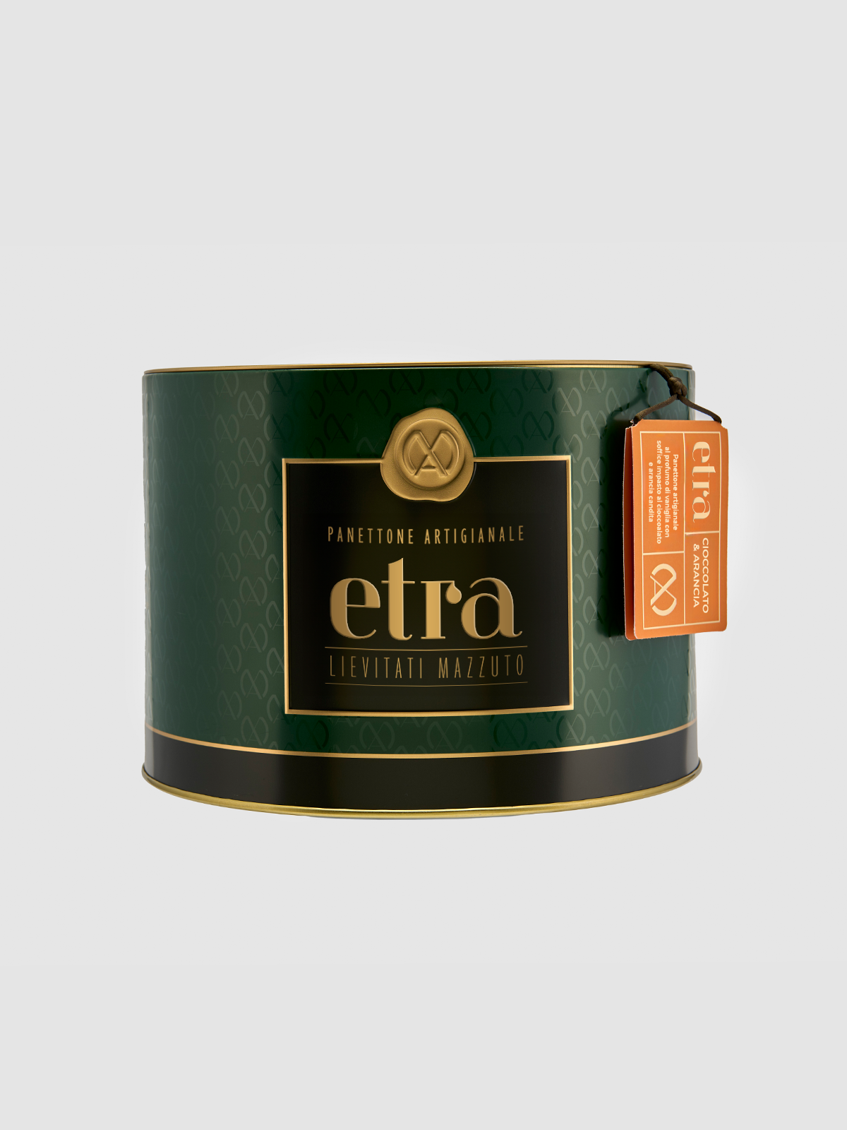 Soffice panettone artigianale al profumo di arancia, miele e vaniglia arricchito con una preziosa selezione di profumatissime arance candite e avvolgenti gocce di cioccolato fondente